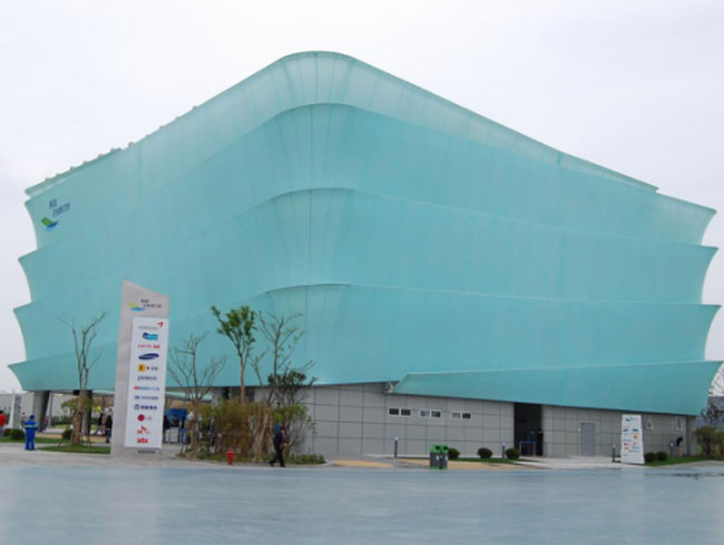 As we are familiar with the world expo in Shanghai a few stadium as an example, the main body of exhibition hall adopts remolding old workshop or waste container, look to be finished by steel wrap structure construction, saves the time limit for a project, and change the appearance of the old workshop square, flat shape. The following figure, for the pavilion in the expo garden:
