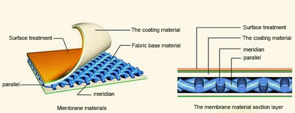 Generally base fabric made by high strength polyester fiber (PVC) membrane material or glass fiber, glass fiber membrane material) woven.