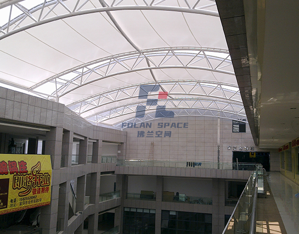 此案例關(guān)鍵詞:骨架膜,PVC膜,商業(yè)蓋頂