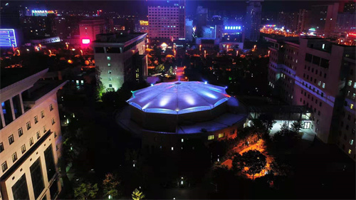 陜西榆林市委會議中心膜結(jié)構(gòu)項目,佛蘭空間2020年完工項目。采用進口PVDF膜材,跨度50M,面積約1962.5平方米,鋼結(jié)構(gòu)為桁架結(jié)構(gòu)形式。項目設(shè)置有10盞LED泛光燈,夜晚猶如含苞待放的“水蓮花”,為市委增加了一道靚麗的風(fēng)景線。