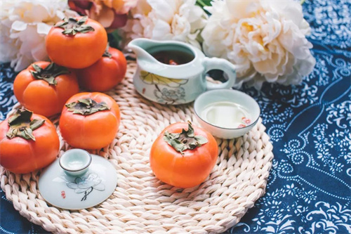 霜降時節(jié),經(jīng)過霜打的柿子清甜可口,營養(yǎng)價值高,能抵御寒氣,還可補筋骨。