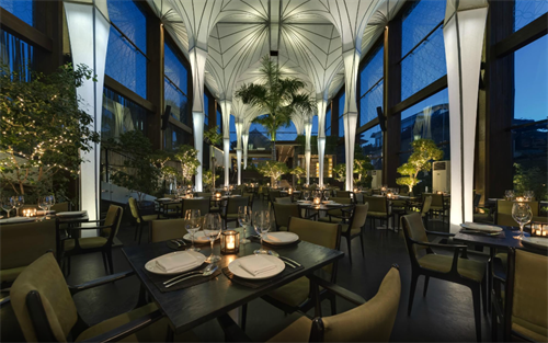 最后分享膜結(jié)構(gòu)在餐廳吊頂?shù)倪\(yùn)用。