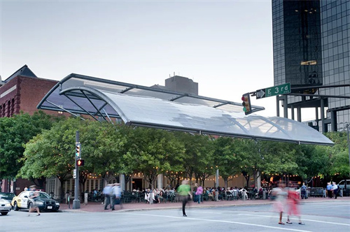 FlyingSaucer飛碟餐廳是德克薩斯州沃思堡市中心最繁忙的餐廳和酒吧。它有一個(gè)大型戶(hù)外用餐庭院,這個(gè)戶(hù)外區(qū)域種植了20多棵成熟的樹(shù)木,可德克薩斯州陽(yáng)光猛烈,受保護(hù)的樹(shù)木無(wú)法為顧客提供足夠的庇護(hù)。