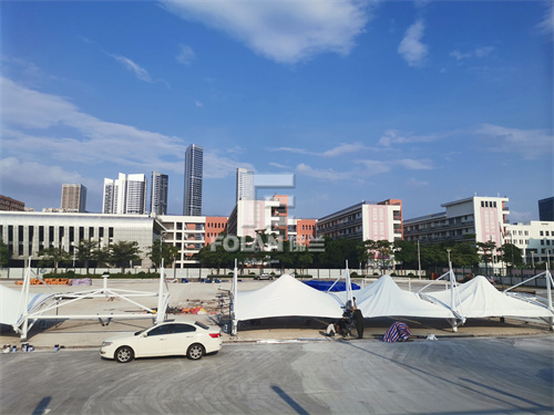 當(dāng)學(xué)校運(yùn)動(dòng)會(huì)舉辦之際,膜結(jié)構(gòu)體育看臺(tái)更能充分發(fā)揮它的優(yōu)勢,起到遮陽避雨的良好的效果,讓全校學(xué)生都能舒適地觀看校運(yùn)會(huì)項(xiàng)目,為同學(xué)吶喊助威。