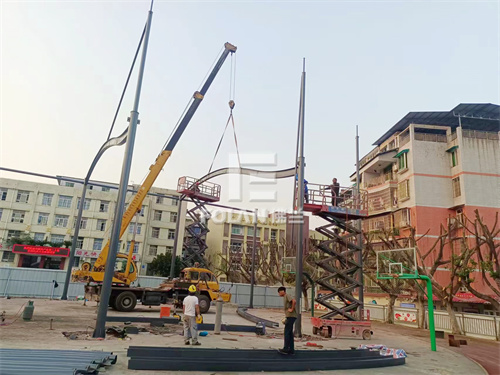 該學校風雨操場位于四川省內江市,佛蘭空間負責該球場鋼結構的制作、加工、安裝和膜材的制作、加工、安裝。項目人員進場后,辛苦施工,不足月余,該項目順利竣工。