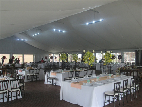 它搭建地點靈活,可選擇海邊,也可選擇平坦的草坪。此外,婚禮篷房的布置操控性也更大,婚禮篷房頂部可選用不同的膜材,有純白色的,也可以是紅色和其他您喜歡的顏色。另外,膜結(jié)構(gòu)婚禮篷房可搭配其他裝飾實現(xiàn)歐式、田園,中式等各種主題婚禮,靈活多變。