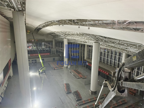該工程位于東莞市虎門鎮(zhèn)白沙村,是東莞唯一的高鐵、城際、地鐵三軌合一的交通樞紐,被定位為“東莞新地標,灣區(qū)新門戶”。項目由中鐵參與建設(shè),佛蘭空間膜結(jié)構(gòu)負責(zé)其南北站房的室內(nèi)軟膜天花吊頂安裝工程。