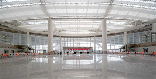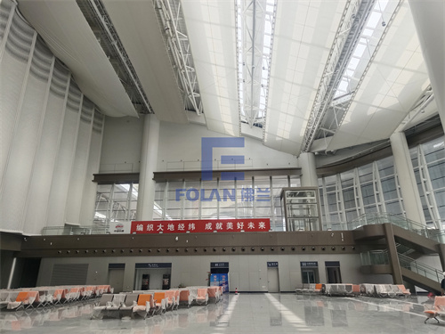 日前,虎門站新建南站房已投入使用,候車大廳寬敞大氣、潔凈美觀。佛蘭空間在安裝室內(nèi)軟膜天花吊頂時,使用了A級防火PTFE軟膜,既能防止陽光暴曬,又兼顧室內(nèi)采光,給旅客營造不眩暈的舒適空間。
