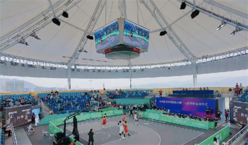 亞運(yùn)會(huì)三人制籃球賽將在這里舉行,這也是全世界首個(gè)固定的三人籃球場(chǎng)館,頂部運(yùn)用鋼膜結(jié)構(gòu)蓋頂。