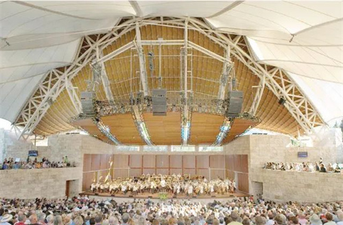 與傳統(tǒng)的音樂會場地不同,坐落于美國西海岸的雷迪貝殼音樂劇場在建筑和聲學(xué)設(shè)計上實現(xiàn)了高度創(chuàng)新。戶外舞臺外表形似貝殼,一律以白色的張拉膜結(jié)構(gòu)所鋪蓋,遠遠望去整個舞臺宛如白帆競發(fā),巍然屹立,典雅靜謐。