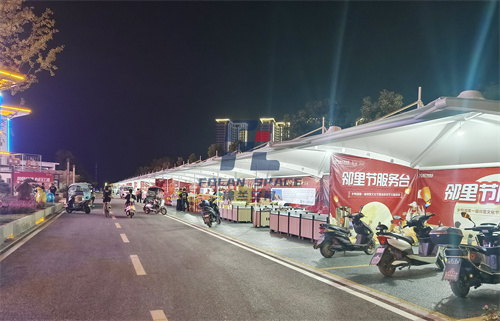 此外,膜結(jié)構(gòu)車棚在節(jié)假日或社區(qū)活動時,還能化身為臨時商鋪或展覽區(qū),為當(dāng)?shù)厣虡I(yè)活動提供了便利條件,能促進當(dāng)?shù)亟?jīng)濟發(fā)展。