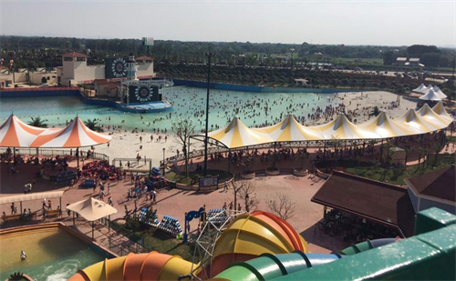 如今,很多主題樂園里的游戲場(chǎng)所,都會(huì)在游樂設(shè)施的上方設(shè)置膜結(jié)構(gòu)頂篷,既可起到遮陽(yáng)的作用,又能增強(qiáng)游樂設(shè)施的視覺效果。下面這2個(gè)主題公園和水上樂園,就恰如其分地運(yùn)用膜結(jié)構(gòu)發(fā)揮其遮陽(yáng)擋雨效果。