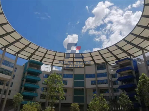 該學(xué)校天幕使用的是PVDF高透光膜材,無(wú)論白天還是夜晚,都可以透過(guò)它看到天空,是名副其實(shí)的天幕。這種高透光性使得天幕在白天能夠提供充足的自然光照,而在夜晚則可以與燈光結(jié)合,營(yíng)造出絢麗的視覺(jué)效果。