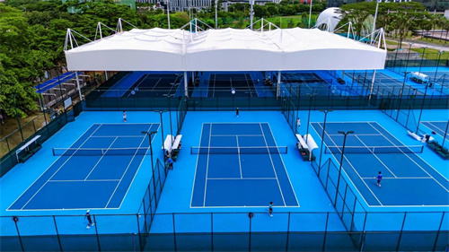 6月,佛蘭空間在深圳大運(yùn)中心新竣工了一座膜結(jié)構(gòu)網(wǎng)球場,該膜結(jié)構(gòu)可覆蓋三片網(wǎng)球場地,投影面積達(dá)2500㎡,采用PVDF膜材,高穹頂設(shè)計(jì)與流線,四周增加立面膜材,可防西曬和掃雨,給網(wǎng)球愛好者擁有風(fēng)雨無阻的打球體驗(yàn)。