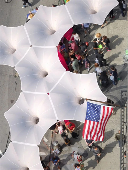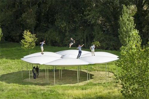牽?;ㄔ煨陀陚隳そY(jié)構(gòu)建筑是一種低成本模塊化產(chǎn)品,可以在任何需要庇護(hù)的地方出現(xiàn)。這些獨(dú)立結(jié)構(gòu)的花瓣無論是單獨(dú)還是概括起來,都為下面的活動和參與者提供了屋頂和空間組織。