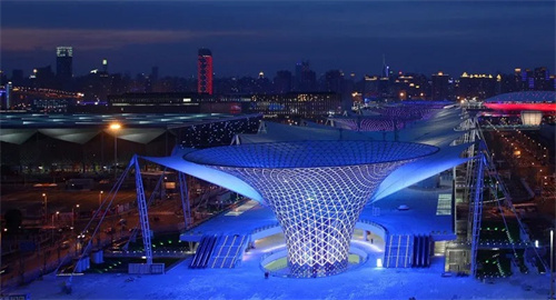 世博軸是世博會園區(qū)內(nèi)最大的單體建筑,全長1045米,寬約110米,氣勢磅礴,是世博會期間重要的人流通道和景觀帶。