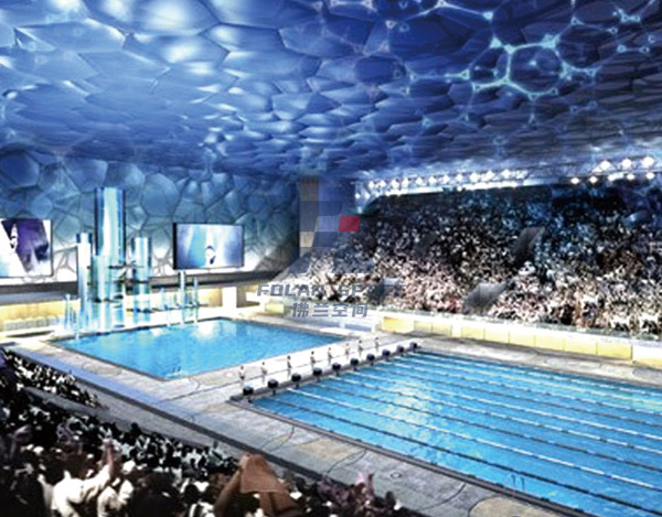 世界上最大的ETFE充氣膜結(jié)構(gòu)建筑,主體鋼構(gòu)采用兩種規(guī)格的多面體(14面體和12面體)組合成的多空間多面體陣列實(shí)體。建筑屋面和墻體有3615個(gè)氣枕覆蓋,大跨度10.75m,大氣枕面積約70㎡,小面積則不足0.5㎡。