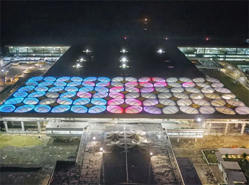 ETFE薄膜可見光透過率高達(dá)95%,同時(shí)它可以通過絲網(wǎng)印刷鍍點(diǎn)控制薄膜的透明度,對遮光度和透光性進(jìn)行調(diào)節(jié),能有效地利用自然光。