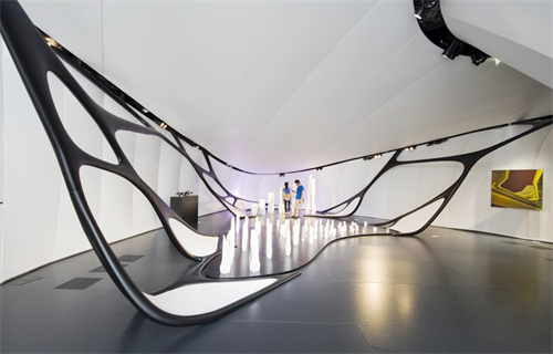 展覽館有機(jī)體的外形由一系列輕質(zhì)曲面組件構(gòu)成。