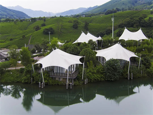 五一期間,人們熱衷于外出旅游。膜結(jié)構(gòu)憑其輕巧獨特的造型,已廣泛用于旅游場景,比如膜結(jié)構(gòu)景觀小品、膜結(jié)構(gòu)景觀設(shè)施、膜結(jié)構(gòu)帳篷酒店等,它既能為游客提供休息、觀景的舒適場所,又能自成一景,可供來往游客駐足欣賞!