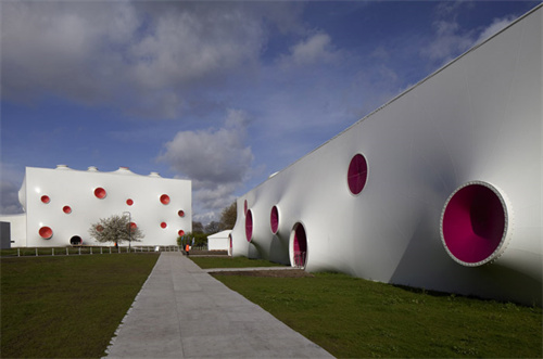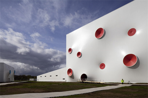 白色的膜外皮上面點(diǎn)綴著彩色的開口,這些開口是節(jié)點(diǎn),也可以消解風(fēng)壓,并為場(chǎng)地通風(fēng),也有的充當(dāng)著場(chǎng)地的出口。
