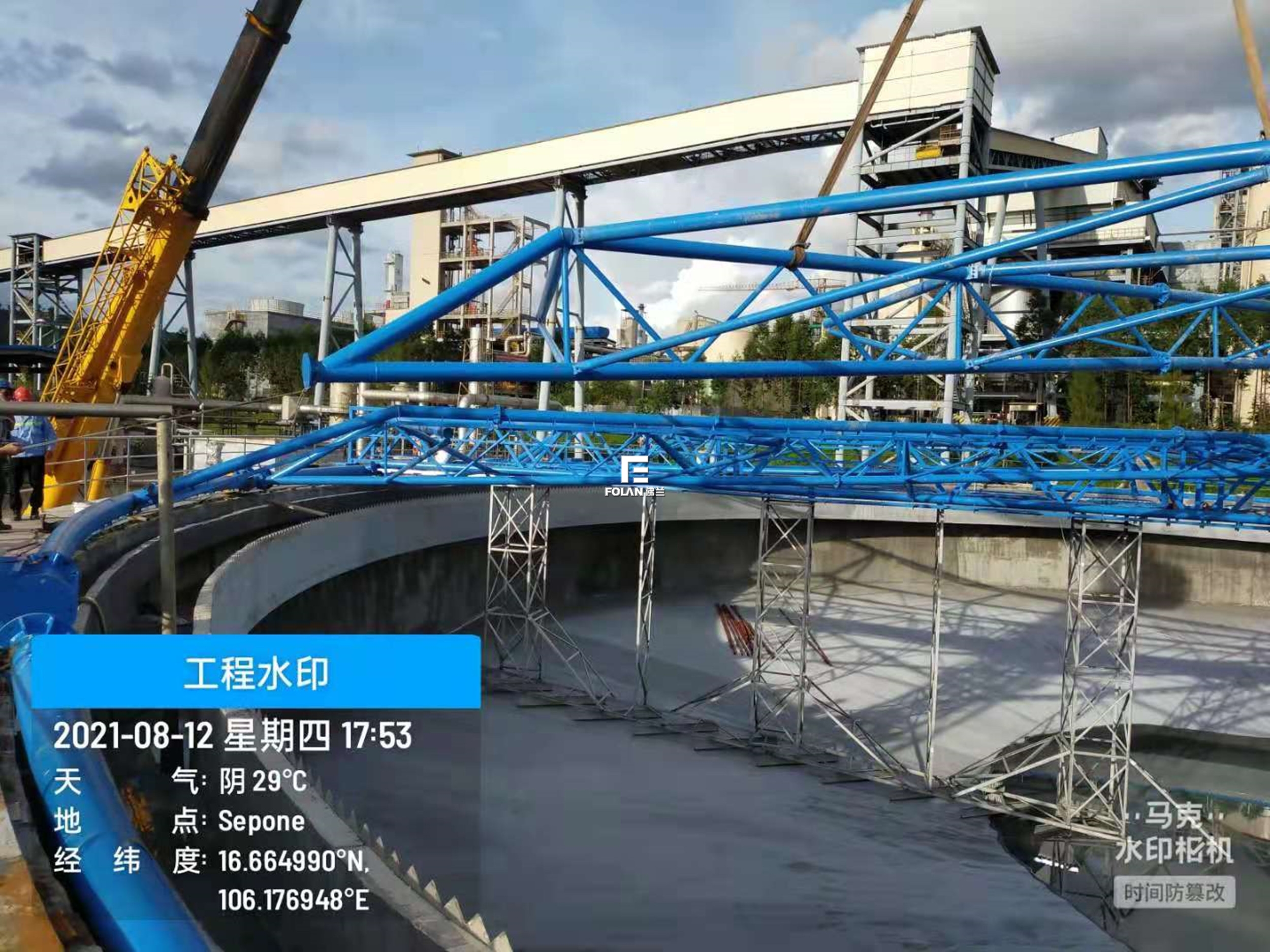 太陽紙業(yè)--老撾隨動(dòng)式污水池加蓋項(xiàng)目,直徑50M,鋼用量70T左右。單體面積1962.5M2