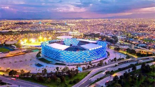 夸烏特莫克體育場(chǎng),墨西哥第四大足球場(chǎng)。體育場(chǎng)作為墨西哥紡織設(shè)計(jì)和運(yùn)動(dòng)建筑領(lǐng)域的創(chuàng)新,是拉丁美洲第一個(gè)也是唯一一個(gè)外墻完全被ETFE覆蓋的體育場(chǎng)。