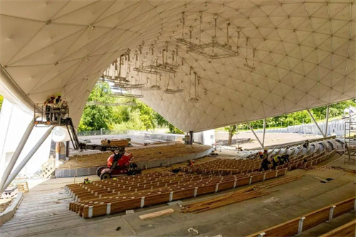 今天,佛蘭空間就為您分享兩個(gè)膜結(jié)構(gòu)在音樂劇場中的運(yùn)用案例。音樂劇場使用膜結(jié)構(gòu),除了能建造別致的外觀,還具有良好的吸聲效果,搭配燈光,形成投影,能為觀眾帶去更加清晰、震撼的視聽效果。