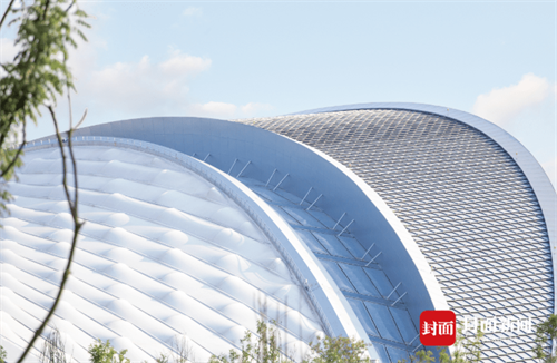 主舞臺(tái)幕墻采用1743塊四棱錐雙曲面鋁板幕墻與3340塊魚鱗疊加鋁板屋面,有種鳳凰羽毛的即視感。