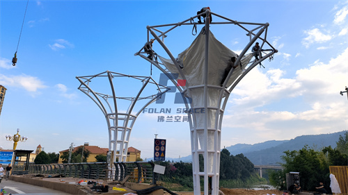 以上就是云南高檔小區(qū)膜結(jié)構(gòu)項(xiàng)目介紹,通過獨(dú)特的造型及燈光投影的運(yùn)用,該小區(qū)膜結(jié)構(gòu)建筑成功吸引人流,促成樓房售賣實(shí)現(xiàn)經(jīng)濟(jì)價值。如您有膜結(jié)構(gòu)建筑需求,可咨詢佛蘭空間!
