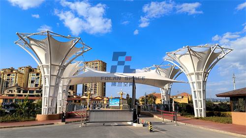 云南高檔小區(qū)膜結(jié)構(gòu),于2023年8月開始動工,11月中旬完工。該建設(shè)項(xiàng)目包含兩處膜結(jié)構(gòu)大門和多處膜結(jié)構(gòu)停車棚。這些膜結(jié)構(gòu)以其獨(dú)特的設(shè)計(jì)和精美的外觀吸引了行人的關(guān)注,他們紛紛前來了解樓盤情況,從而促進(jìn)了云南房產(chǎn)業(yè)的發(fā)展。