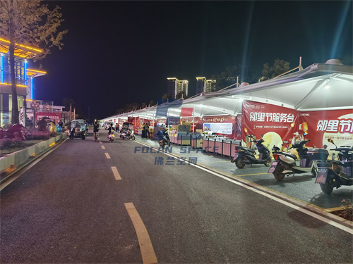 另外,膜結(jié)構(gòu)車棚在節(jié)假日或社區(qū)活動時,還能化身為臨時商鋪或展覽區(qū),為當(dāng)?shù)厣虡I(yè)活動提供便利條件,促進(jìn)當(dāng)?shù)亟?jīng)濟(jì)發(fā)展。