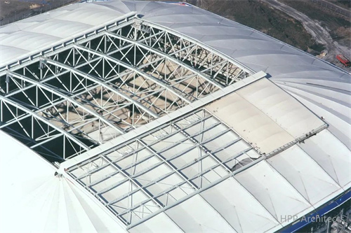 屋頂由兩個(gè)滑動(dòng)薄膜屋頂實(shí)現(xiàn)打開或關(guān)閉,防雨的同時(shí)提供足夠光線。正面看臺(tái)照明和212泛光燈可為晚間活動(dòng)提供充足照明,并為活動(dòng)組織者在一年365天的任何天氣條件下提供可靠支持。
