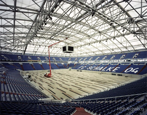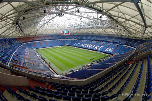費(fèi)爾廷斯競(jìng)技場(chǎng),原名奧夫沙爾克體育場(chǎng)(ArenaAufSchalke),它由沙爾克04足球俱樂部自籌資金建造,1998年開始建設(shè),于2001年8月13日正式揭幕。