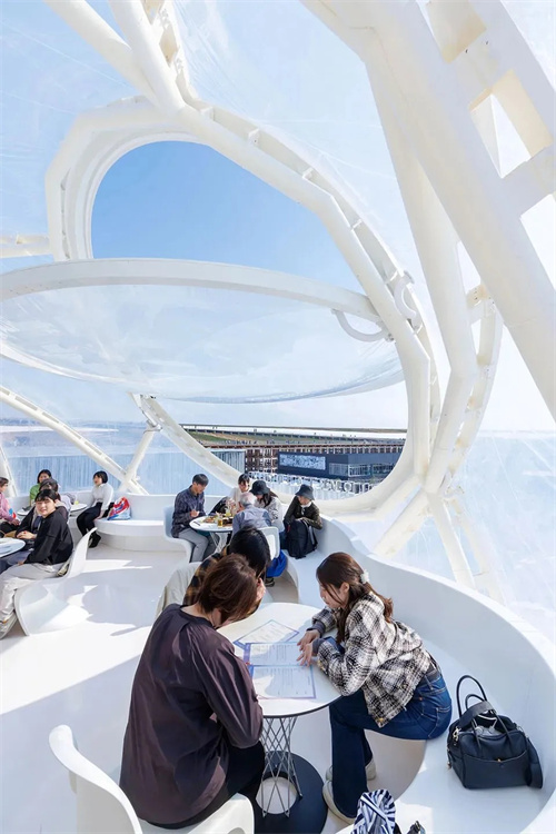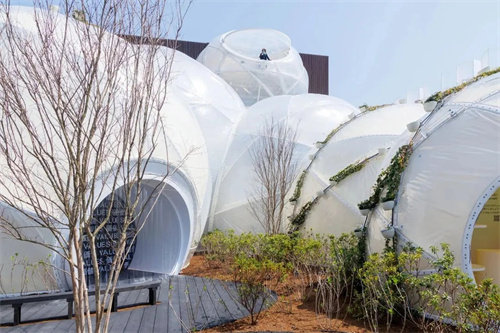 瑞士館的設計靈感源自于自然,旨在展示人類與自然和諧共存的美好愿景。整個展館由五個PVC與ETFE構成的雙層膜結(jié)構充氣輕質(zhì)球體組成,這些球體相互連接,仿佛是大自然中的一顆顆珍珠,被巧妙地嵌入了一片綠意盎然之中。這種設計不僅美觀大方,更體現(xiàn)了瑞士對于環(huán)保和可持續(xù)發(fā)展的深刻理解。