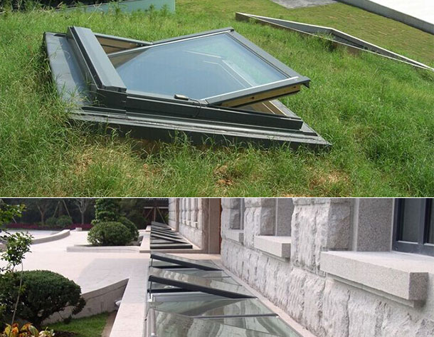 ●天窗結(jié)構(gòu):窗體以鋁合金型材結(jié)構(gòu)為主;窗面可采用鋼化玻璃、PC陽光板等材料。